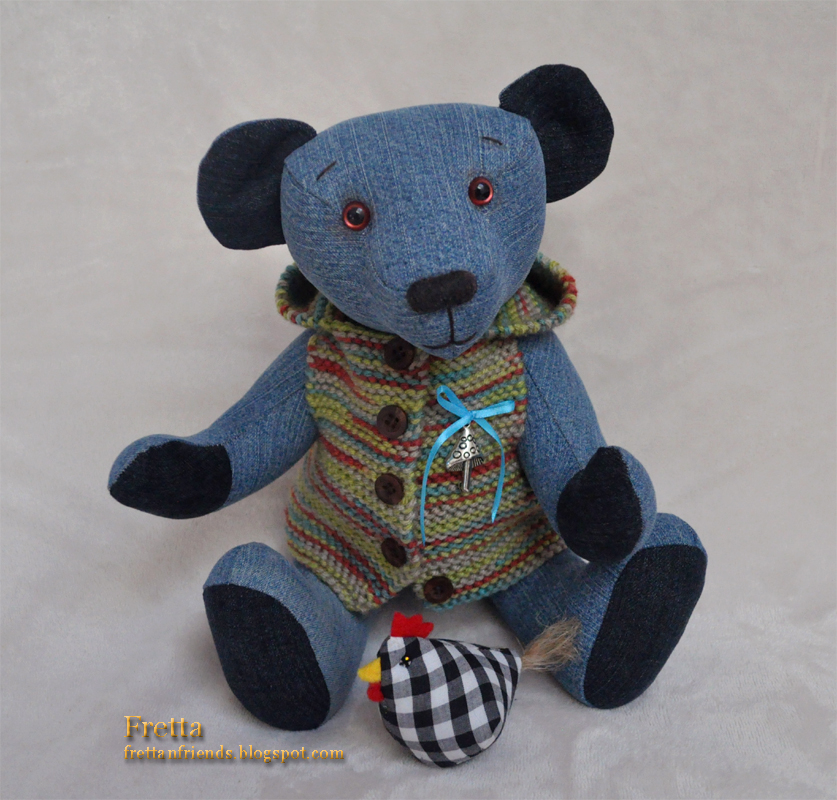 The Bear is 5 point jointed meaning that all his limbs and the head can move / turn around.